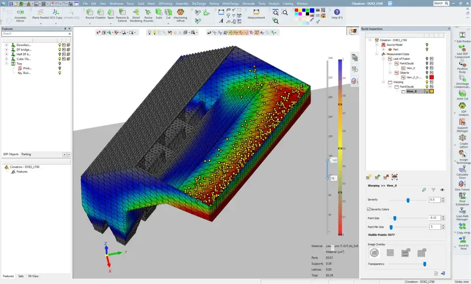 재료와 프로세스 과학자 및 엔지니어 팀은 CT 스캔 결과와 높은 수준의 상관관계를 보여주는 알고리즘을 개발하여 사고의 자동화된 제작 후 감지를 가능하게 합니다. 연구에 따르면 DMP 검사 분석 결과와 200μm를 초과하는 결함에 대한 CT 스캔 데이터에서 발견한 융합 부족(LoF)과의 100% 상관관계가 LaserForm Ti Gr23(A)와 Maraging Steel(A)로 DMP 320 금속 3D 프린터에서 프린트된 대표적인 다양한 테스트 부품에서 확인되었습니다.