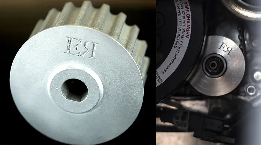 English Racing은 직경이 더 큰 새로운 언더풀리 기어를 제작하면 더 느리게 회전하게 되므로 유압이 낮아질 것이라 생각했습니다. 그러나 기존의 풀리는 주조 부품이었기 때문에 일반적으로 금형이 필요하며 따라서 금형을 생산할 공구를 만들어야 했습니다. 그러자면 리드 타임이 엄청 지연되고 비용도 감당하기 힘든 상황이었습니다.